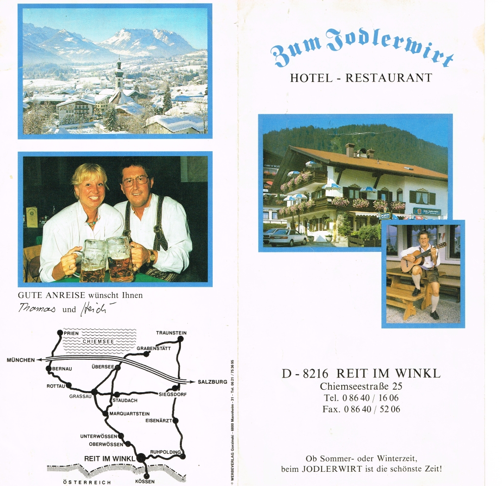 Reit im Winkl de en az üç kere kaldığımız otel.Sahibi Thomas kontrabas çalar müşteri gelince mutfağa girer ızgara yapar, sonra servis yapıp ,müziğe devam ederdi.Son gittiğimizde taşınmışlar yerlerine göçmen bir aile gelmiş vehasıl mekanın tadı kaçmıştı.Bir daha da uğramadık.