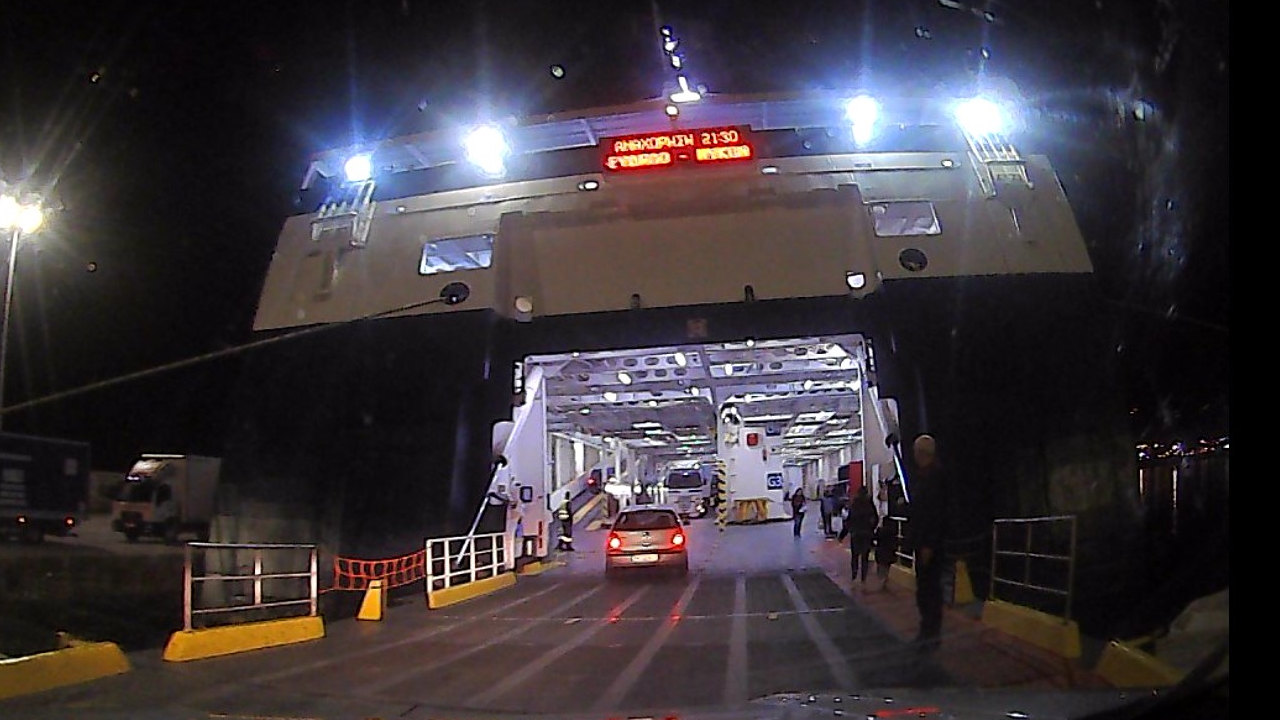 Sonunda saat 21 gibi kapıları açıyorlar ve feribota biniyoruz.