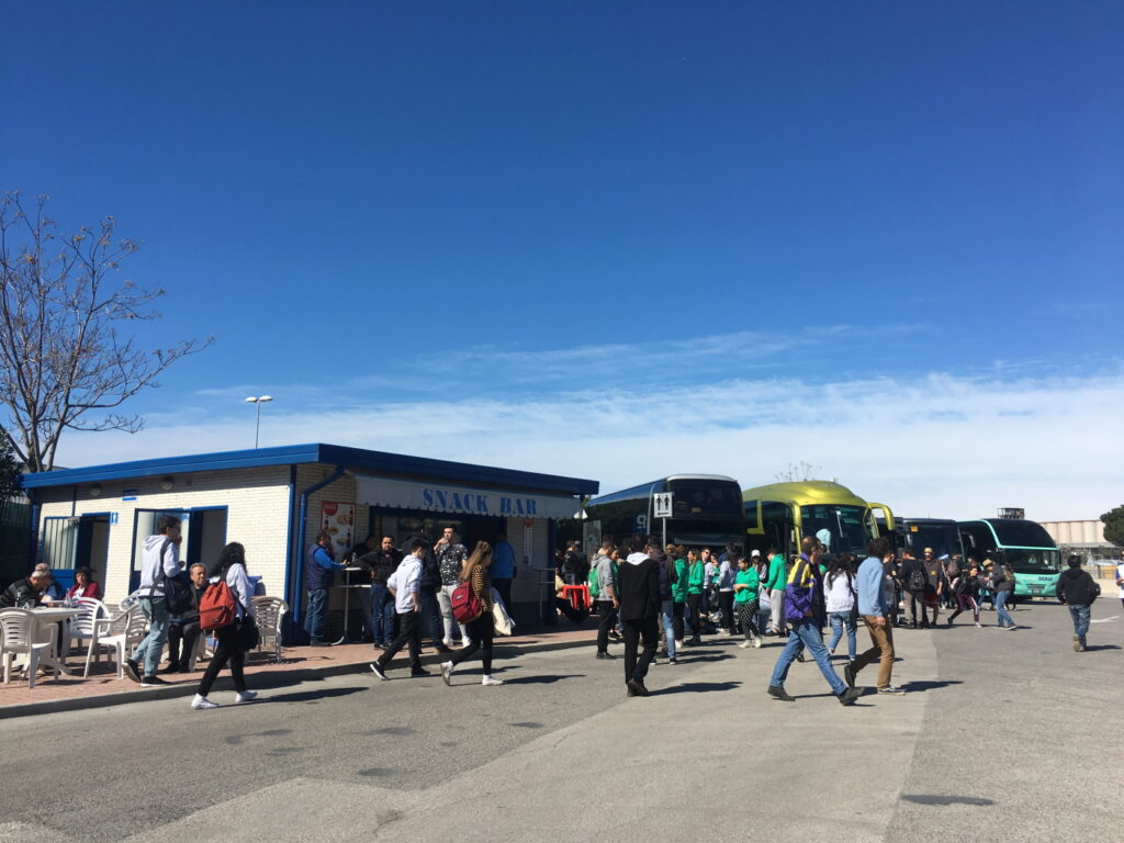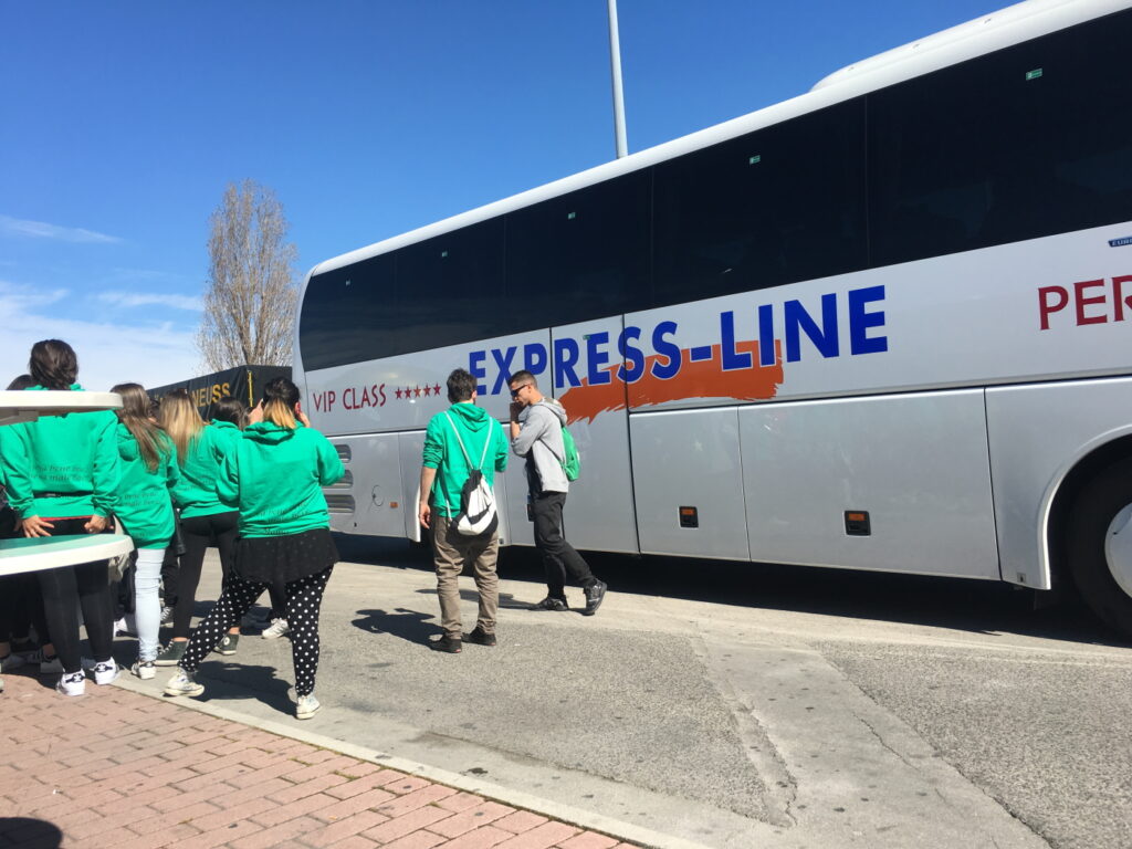 Feribot termimali çok kalabalık 5-6 otobüs italyan lise öğrencisi Yunanistana gezmeye gidiyor.