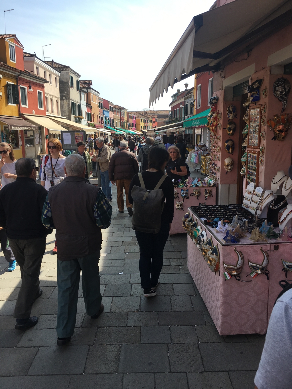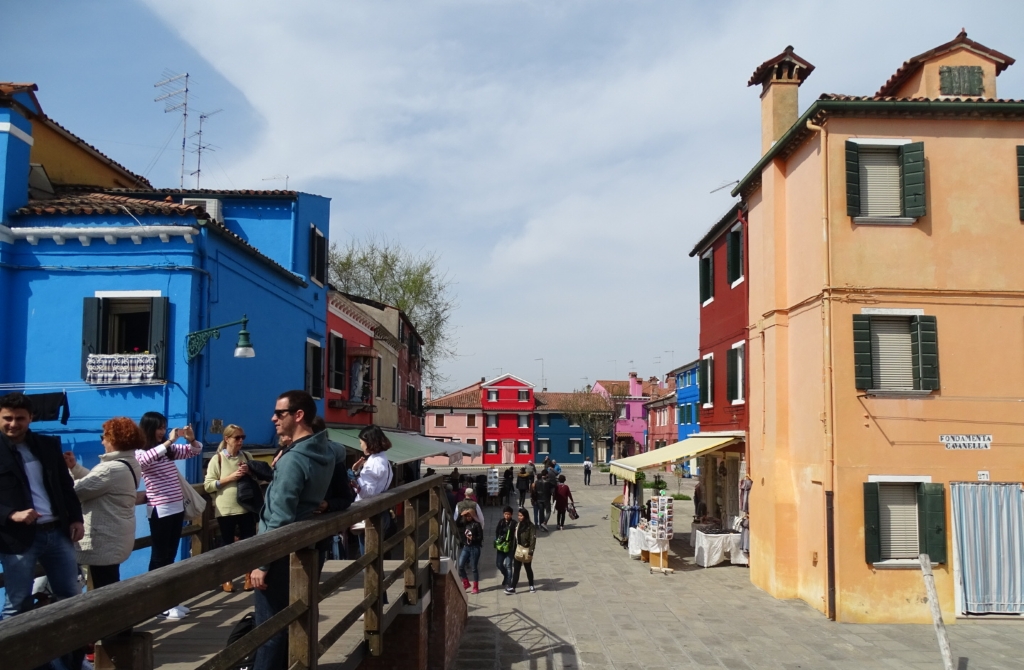 Burano ya gitmeden seyahat bloglarına baktık.Renkli evlerin olduğu ama ,hiç kimsenin olmadığı ıssız sokaklar.Terkedilmiş bir ada sanki.Ama daha vapuretto dan iner inmez kalabalık bir kafe ,iskele önünde bekleyen yüzlerce her millettn insanla karşılaşınca o blogçular bu insanları nasıl yok etti diye şaştık.
