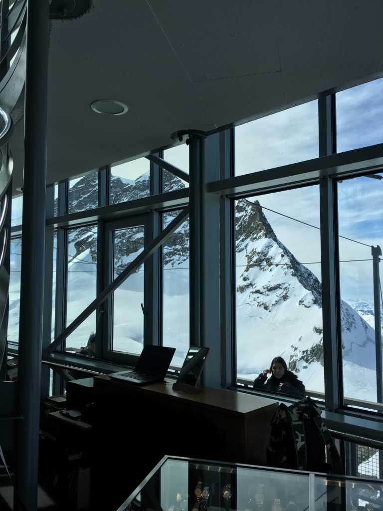 Burda tren değiştiriliyor ve Jungfrau (rakım 3454 mt)tepesine doğru yola koyuluyor.ikinci tren çoğunluka tünellerden gidiyor ve yeraltında bir istasyona geliyor.Top of europa demelerinin nedeni Avrupanın en yüksek rakımlı tren istasyonu burda olduğu içinmiş..