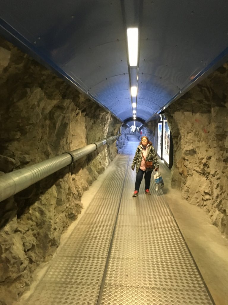Ufak bir kahve molasından sonra trenimiz geliyor ve 3454 mt deki Jungfrau tepesine doğru yol çıkıyoruz.Trenimiz yola çıkar çıkmaz tünele giriyor bir daha çıkmadan yer altındaki istasyona geliyor.