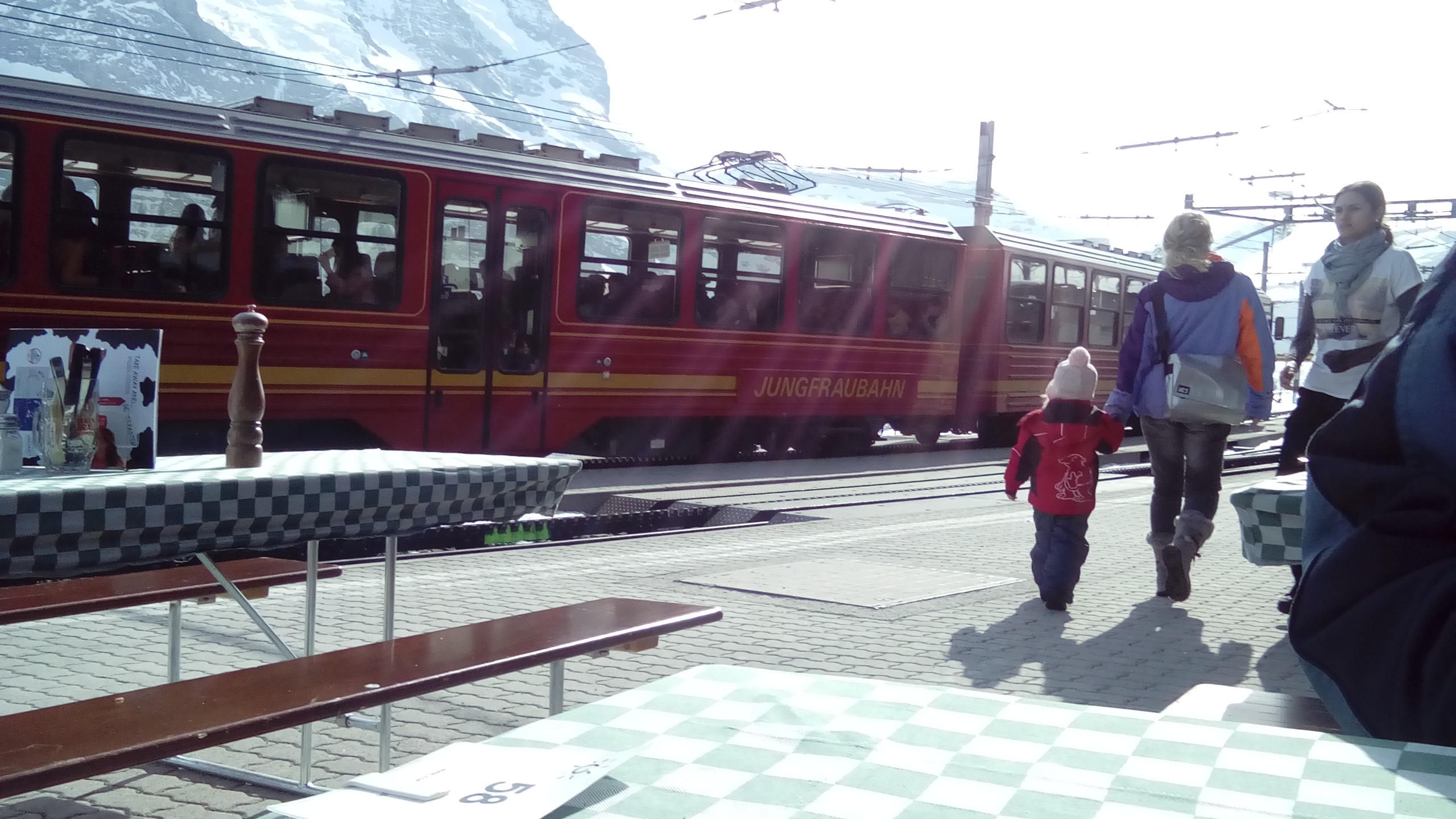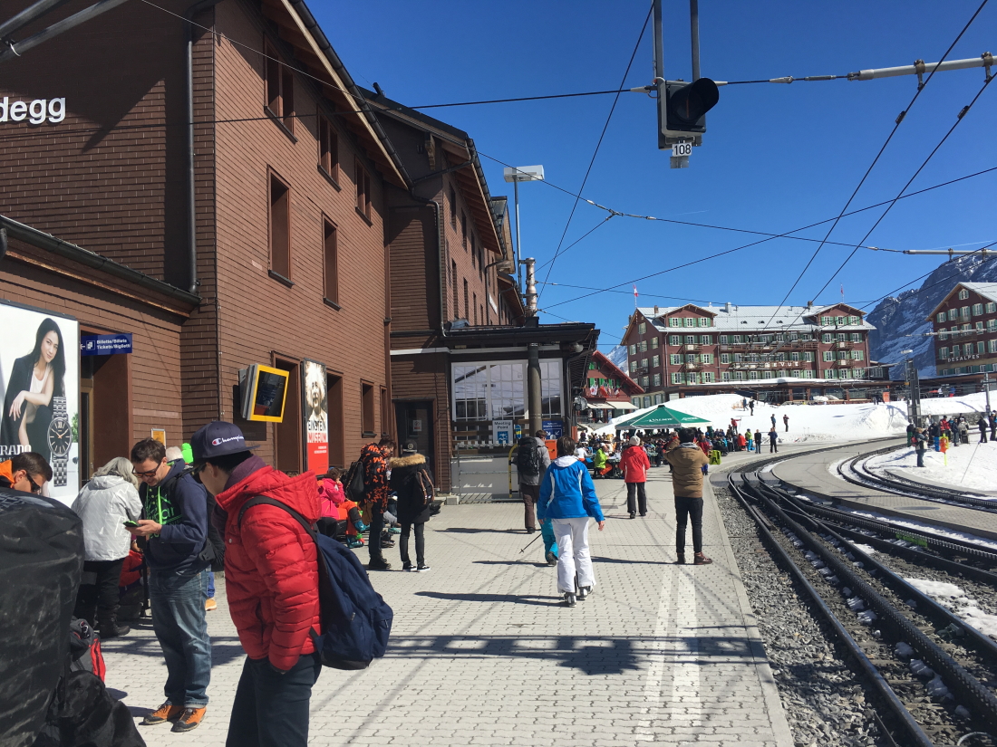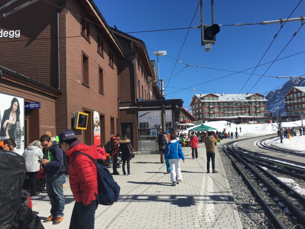 Kleine Scheidegg istasyonuna dağın öbür tarafındaki Laterbruuner ve Wengenden de trenler gelip burda Jungfrau için aktarma yapıyorlar.Yani gelen giden trenler oldukça yoğun bir istayon burası.Gelenlerin bir kısmıda kayak için burdan kalkan liftler için geliyorlar.