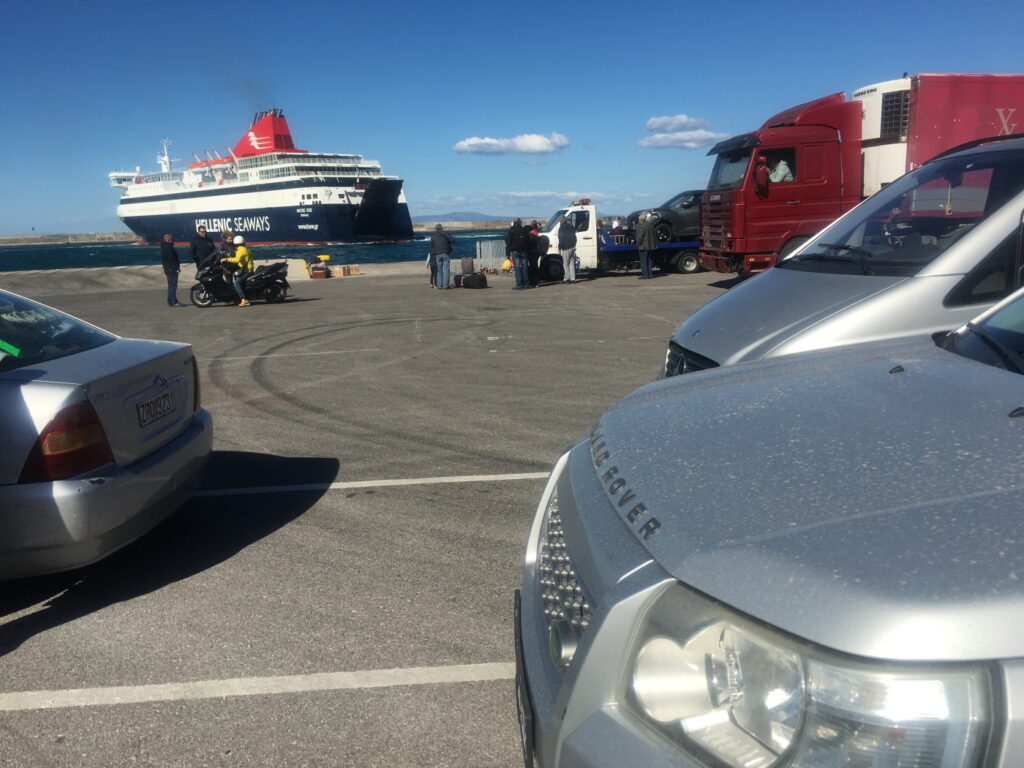 Yalnışlıkla Marathokamposa girmemizin dışında bir problem olmadan Karlovassiye saat 13 de vardık.Feribotumuzun gelmesine daha bir saat var.Limandaki klübeden check-in yapıp biletlerimizi aldık ve feribotumuzu beklemeye başladık.