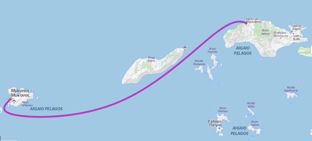 Feribotumuz zamanında kalkıyor ve kuzeyden gelen rüzgardan kaçınmak için yolunu biraz uzatıp İkeria Adasının güneyini takiben gidiyor.