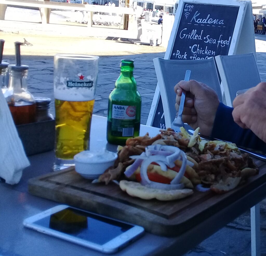 Tabiiki sahilde yemeği seçiyoruz.Tabakta gyros&mythos.