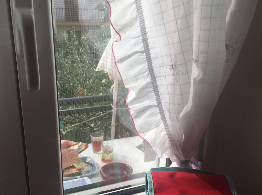 Evet sabah odamızın minşk balkonunda kahvaltımızı ediyoruz.Önümüzde bu kadar güzel mis gibi kokulu bahçe ve şahane hava varken balkon kimin umurunda.