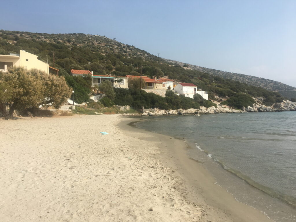 Psili Amos plajını gördük.Plaj güzel bir kumsal ,denizde güzel.Ama çevresi çok hoşumuza da gitmedi.Esasında bu plajı denizden bir sene önce görmüştük.Kuşadası ,Davutlardan kalkan gezi tekneleri bu koylara girip çıkıyordu o