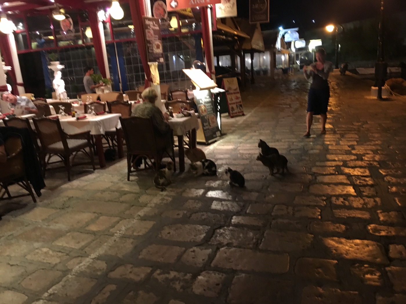 Yemek için geç kaldık ama bu bizim için.Yunan adalarında akşam 8 de yemeğe giderseniz ve tavernayı ,restaurantı bomboş görürseniz şaşırmayın.Yunanlı komşularımız genellike akşam yemeğine 9 ile 10 arasında giderler ve yemekten gece 12 gibi kalkarlar.Bu yemeği ne zaman hazmedeler bizim için bir muamma.