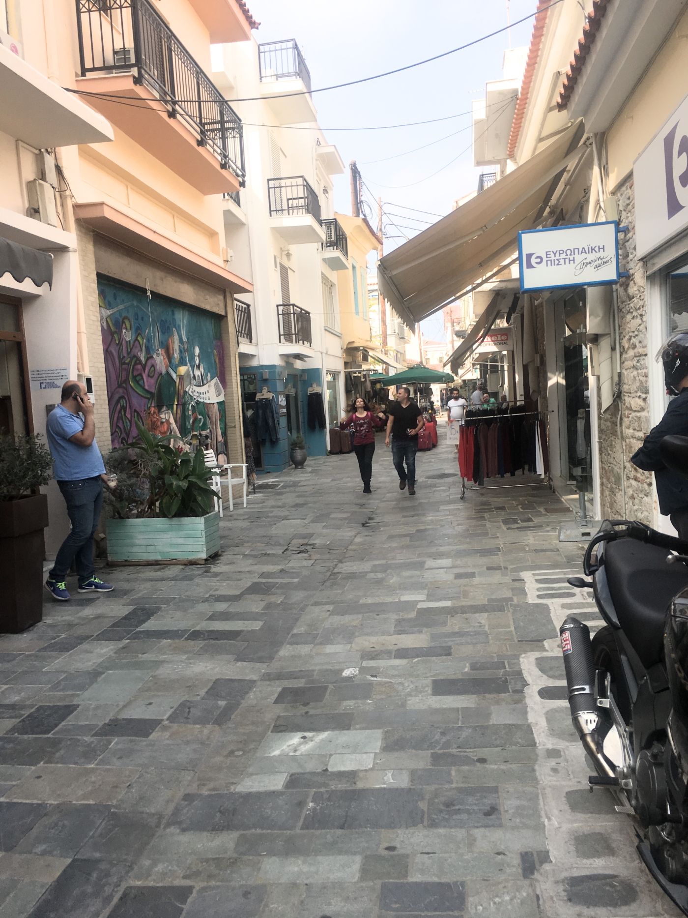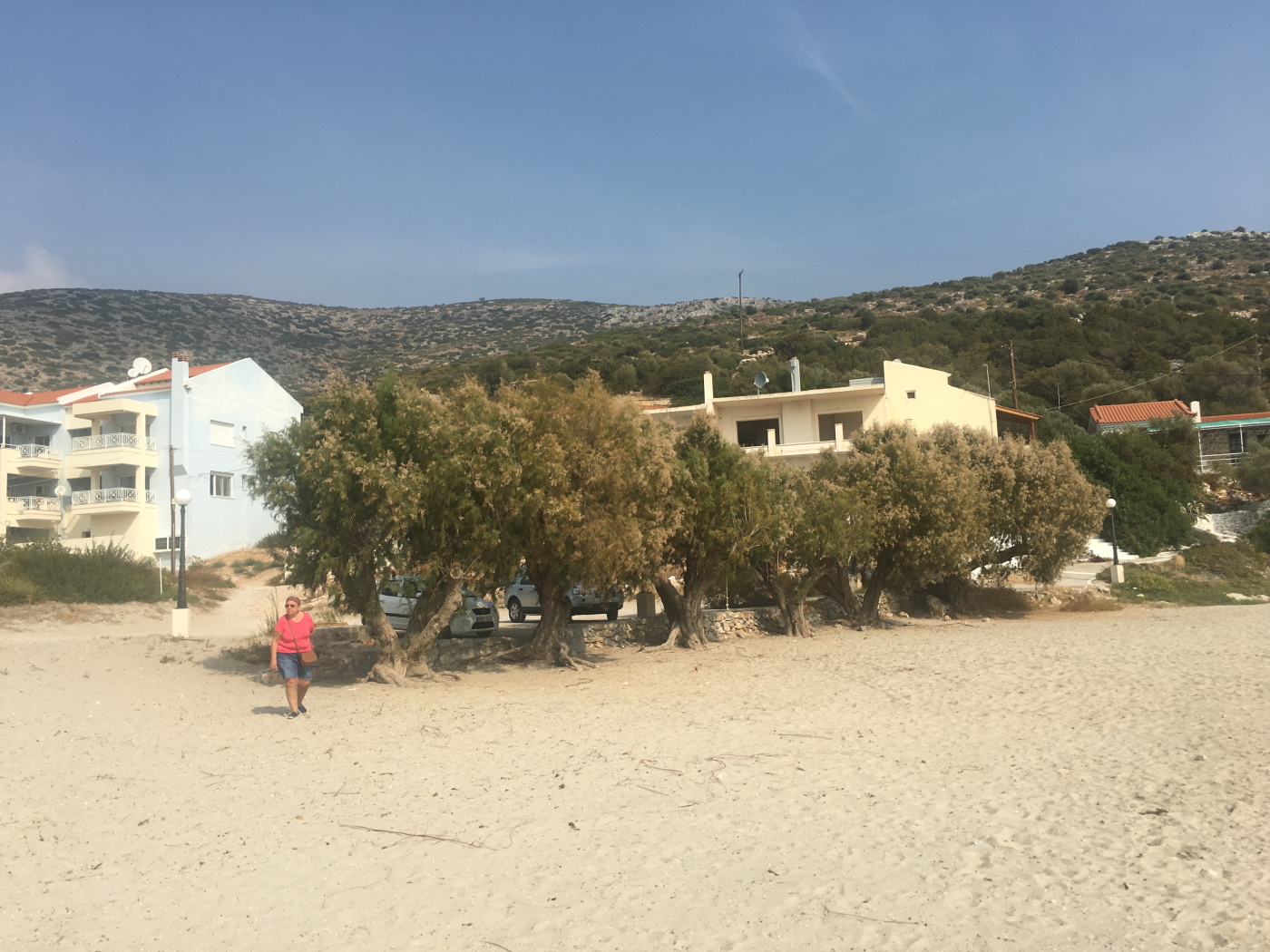 Otelimize yerleşip biraz dinlendikten sonra ilk tanışma için Pisagora (Pythagoria) gideceğiz.Esasında yürüme mesafesinde ama araba ile yola çıkıp hemen kasabanın girişindeki büyük ücretsiz park yerine park edip limana doğru yürüyerek iniyoruz.